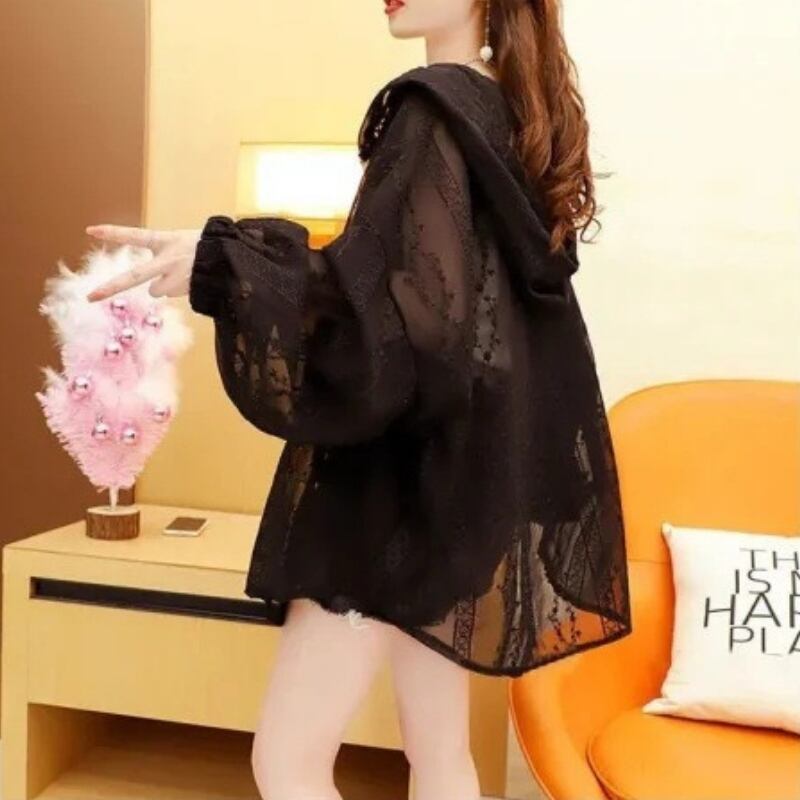 UVカット パーカー レディース フード付き 紫外線対策 おしゃれ レース シースルー 日焼け止め服 夏服 トップス 羽織 薄手 長袖 お出かけ 体型カバー カーディガン 前開き きれいめ UV対策 サマーカーディガン