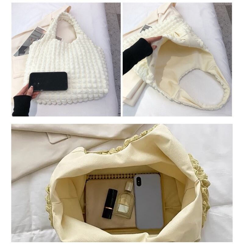 ポップコーンバッグ ぽこぽこバッグ 黒 A4サイズ対応 ポコポコバッグ トートバッグ ぽこぽこ ポコポコ レディースバッグ かばん マザーズバッグ 通勤バッグ 通学バッグ オタ活 うちわサイズ 韓国 韓国ファッション 韓国トレンド