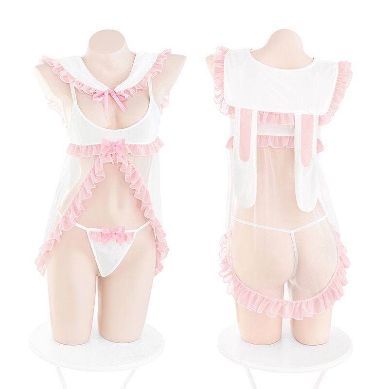 バニーガール コスプレ キャミソール ハロウィン セーラー服 コスチューム 学生服 セクシーランジェリー メイド バニー コスチューム 仮装 エロカワ えろい 透け コスプレ 衣装 かわいい ミニスカート 制服 4点セット | okinashop