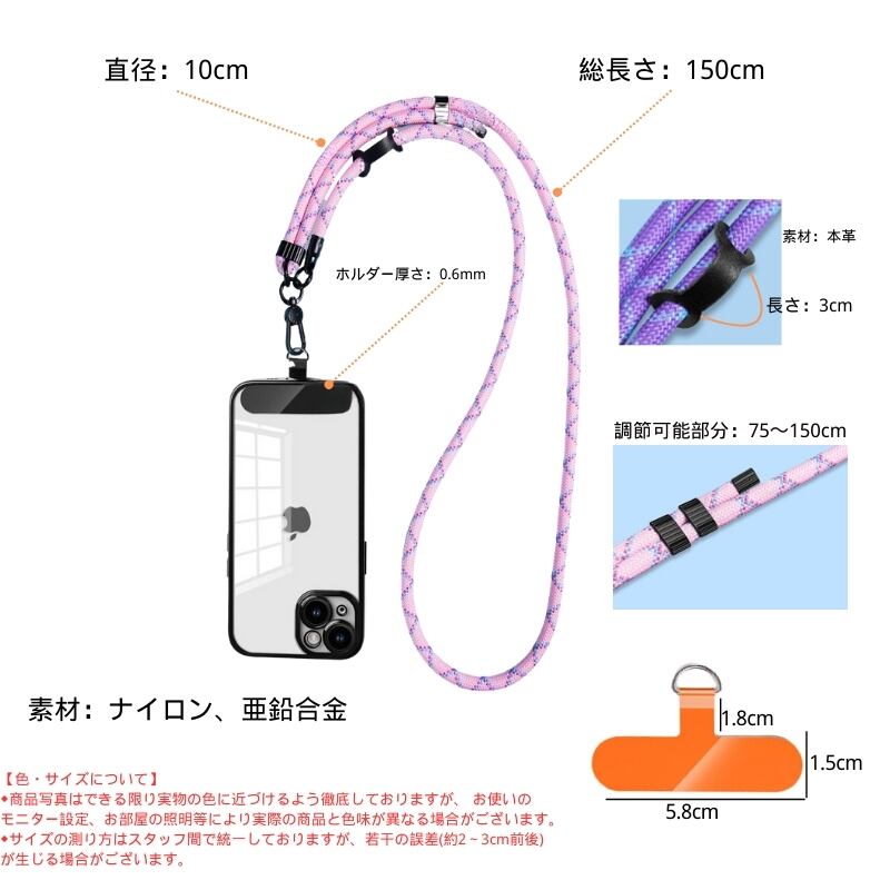 ※スマホの重量やサイズによっては、ストラップの長さも変わることがあります。ご注意ください。
