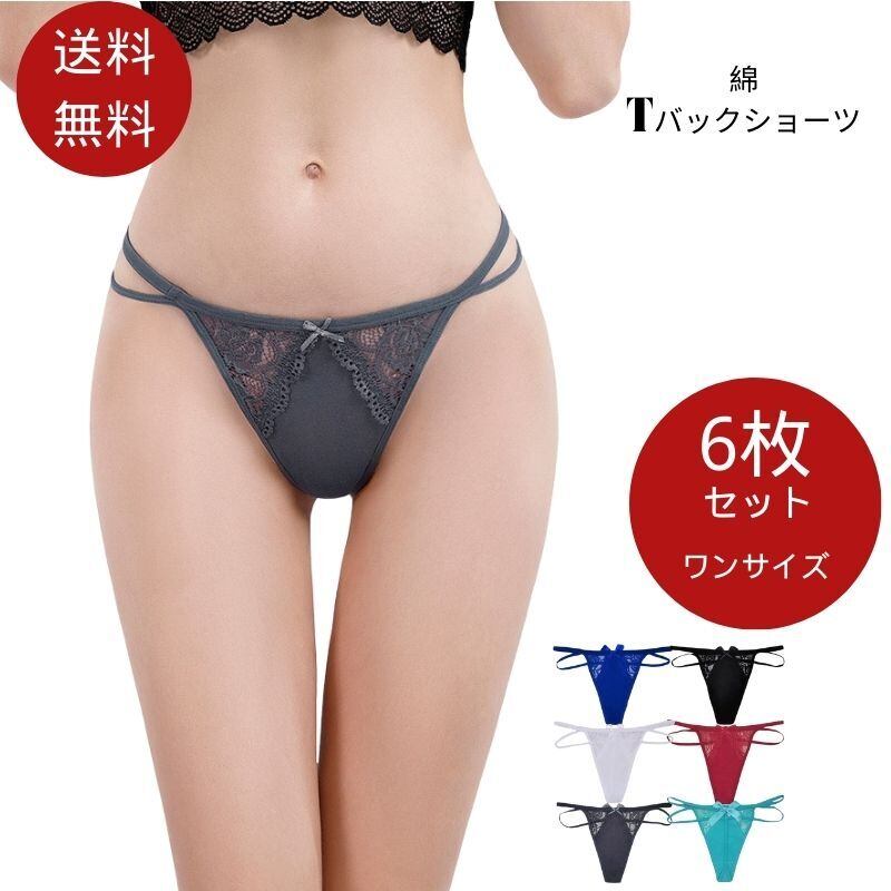 Tバックレース ショーツ 6枚組セット レディース セクシー レース セット Tバックショーツ 女性 響かない 綿 素材 バックレース サラッと快適 べたつきゼロ 速乾 下着 パンツ 大人 6枚 ランジェリー 送料無料 | okinashop