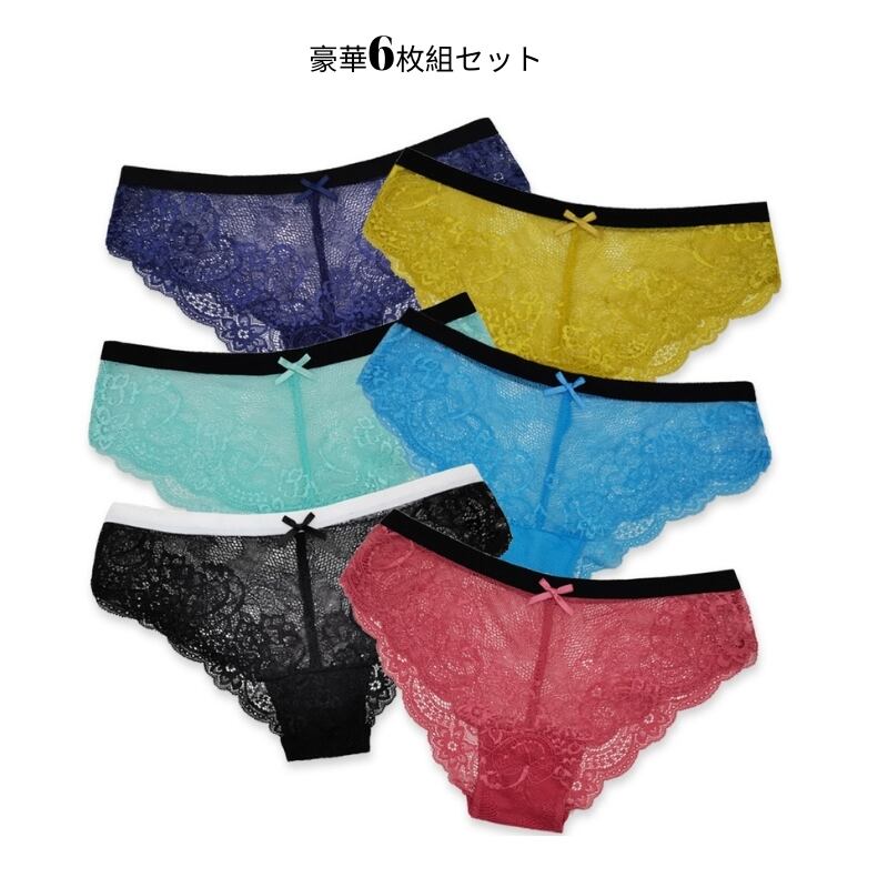Tバックレース ショーツ 6枚組セット レディース セクシー レース セット Tバックショーツ 女性 響かない 綿 素材 バックレース サラッと快適 べたつきゼロ 速乾 下着 パンツ 大人 6枚 ランジェリー 送料無料 | okinashop