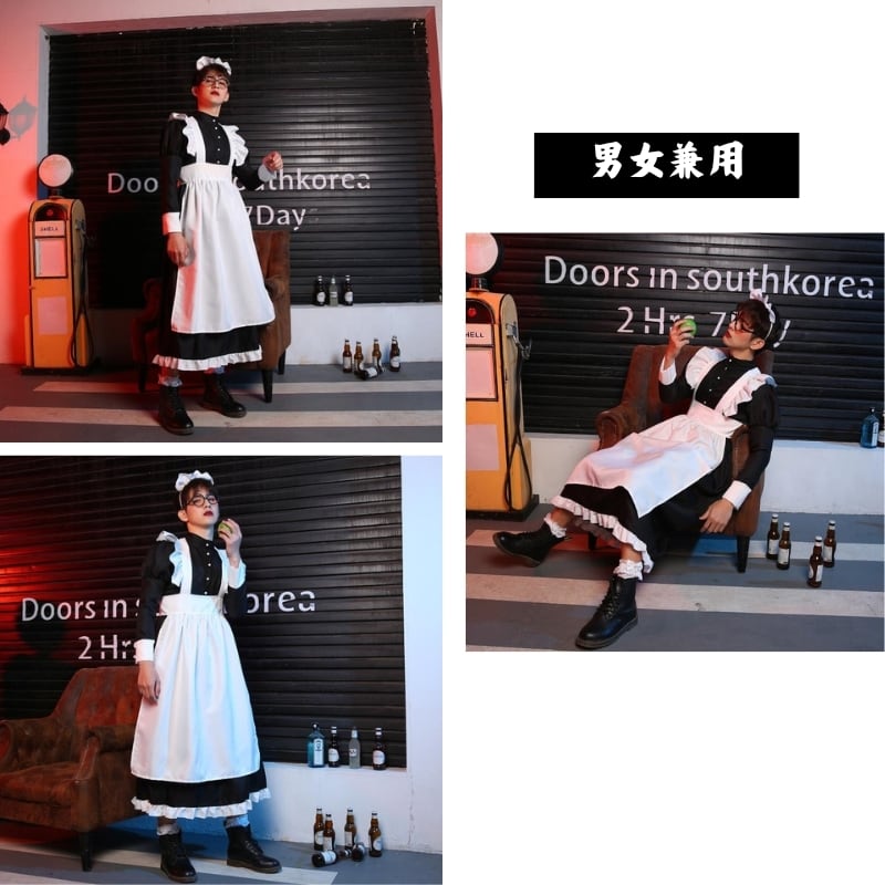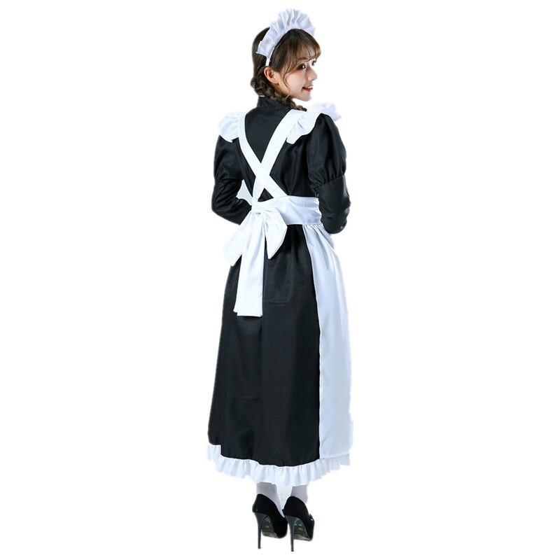 メイド服ロング丈 ロングメイド服コスプレ メイドカチューシャ メイド服カチューシャ フリルエプロン 私服から変身 クラシカル イギリス風 クラシック 長袖 コスチューム ハロウィン レディース メンズ ゴスロリ ロリータ | okinashop